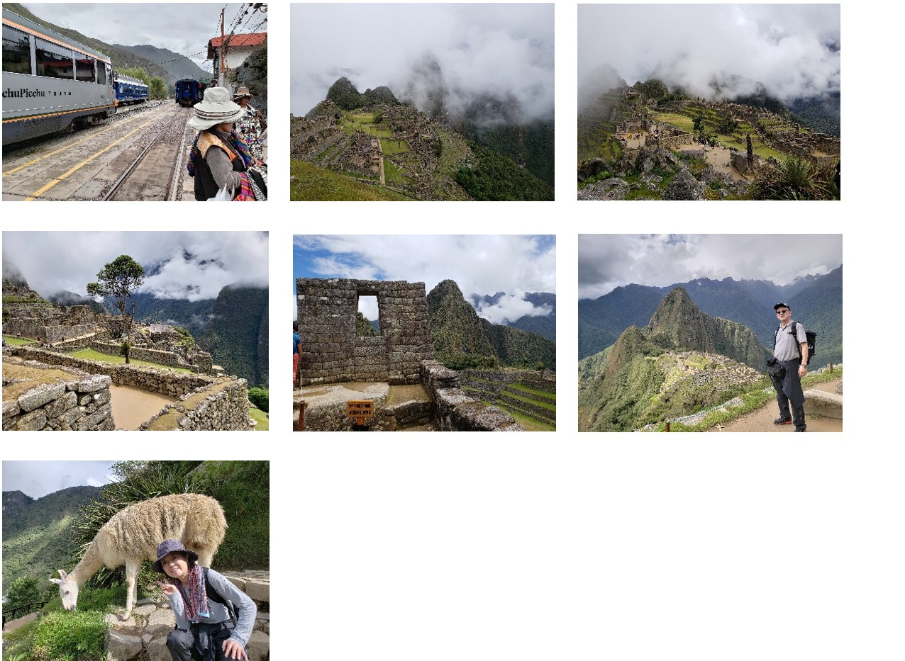 リマ到着後は市内観光です。植民地時代に建てられた建築物が多く残る「リマ・セントロ地区」ではセプリアンタイルで有名な「サン・フランシスコ教会」、インカ帝国を滅亡させたフランシスコ・ピサロの遺体が安置されているペルーで最も古いといわれている大聖堂「カテドラル」、等を見学しました。翌日はマチュピチュ観光への出発です。リマからクスコに移動して列車にのり、マチュピチュ村に入ります。到着した駅からすぐのところにあるホテルは予想していたより綺麗で快適でした。翌日は朝からバスを利用して遺跡の近くまで移動です。当日は雨が降ったり、晴れ間が出たりの天候でしたが、観光写真でみるマチュピチュの景色(近くの丘の上から)や遺跡内の散策など堪能することが出来ました。マチュピチュ遺跡の裏山にあるインカの道を1時間ほど登ると「太陽の門」があり、そこからの景色は見る価値があると聞きましたが、体力面を考え断念しました。遺跡内を散策しているとリャマによく遭遇しましたが、横を通り過ぎても警戒することなく食事に集中していました。マチュピチュまでの移動方法と山々に囲まれた環境を見てみると発見が遅くなった理由も分かった様な気がしました。