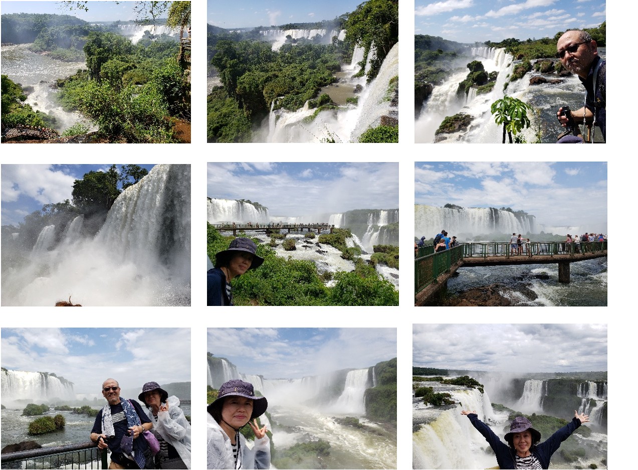 私は遊歩道をのんびり色々な所から流れ落ちる滝を見学しましたが、アクティブな妻はヘリコプターで上空から、ボートで滝の下へとずぶ濡れになりながら滝を楽しんでいました。ブラジル側からも「悪魔の喉笛」を斜め下の方から楽しめる展望デッキ(滝から流れ落ちる川の様な場所の上に作られています)があり、こちらは全体が見渡せる景観となっていました。二日間観光しましたが、全てを見ることが出来ない程、壮大な滝でした。